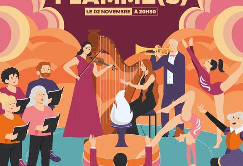 Le 2 novembre prochain, retrouvez quelques 80 artistes amateurs sur scène (chœur, chorégraphie artistique et sportive, jeu théâtral, orchestre…), pour le spectacle Flamme(s) ! Cet évènement entraînera le public, qui sera également à certains moments partie prenante de l’action, dans un tourbillon enchanté d’où jailliront les flammes de la joie, de l’amour, de la vie, de l’espoir.