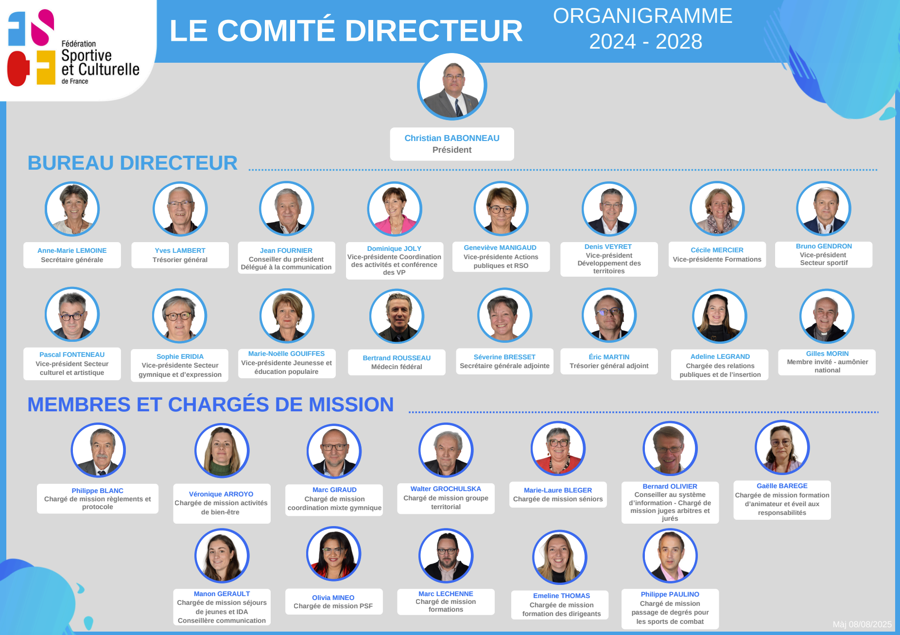 Le comité directeur de la FSCF met donc en œuvre la politique générale de la fédération. Ses missions incluent :