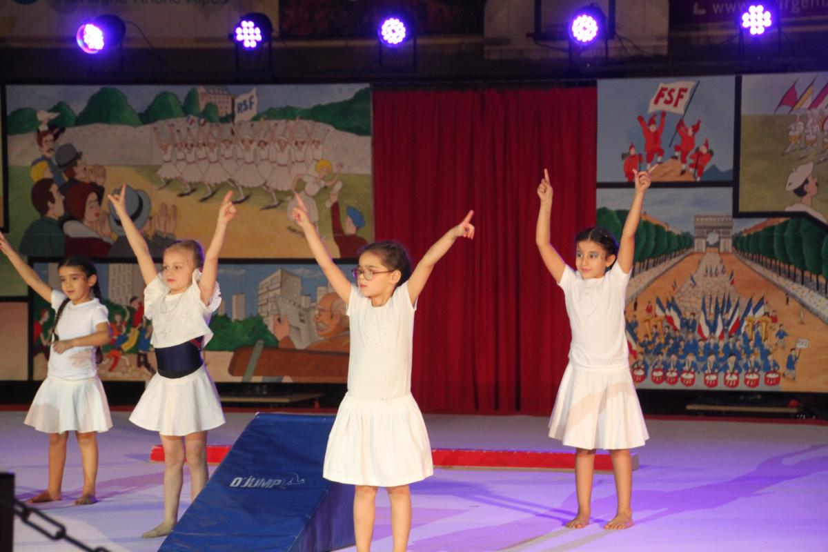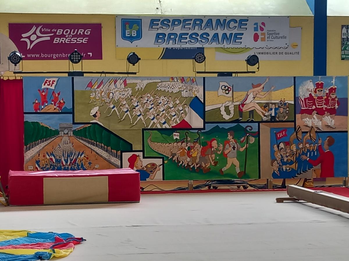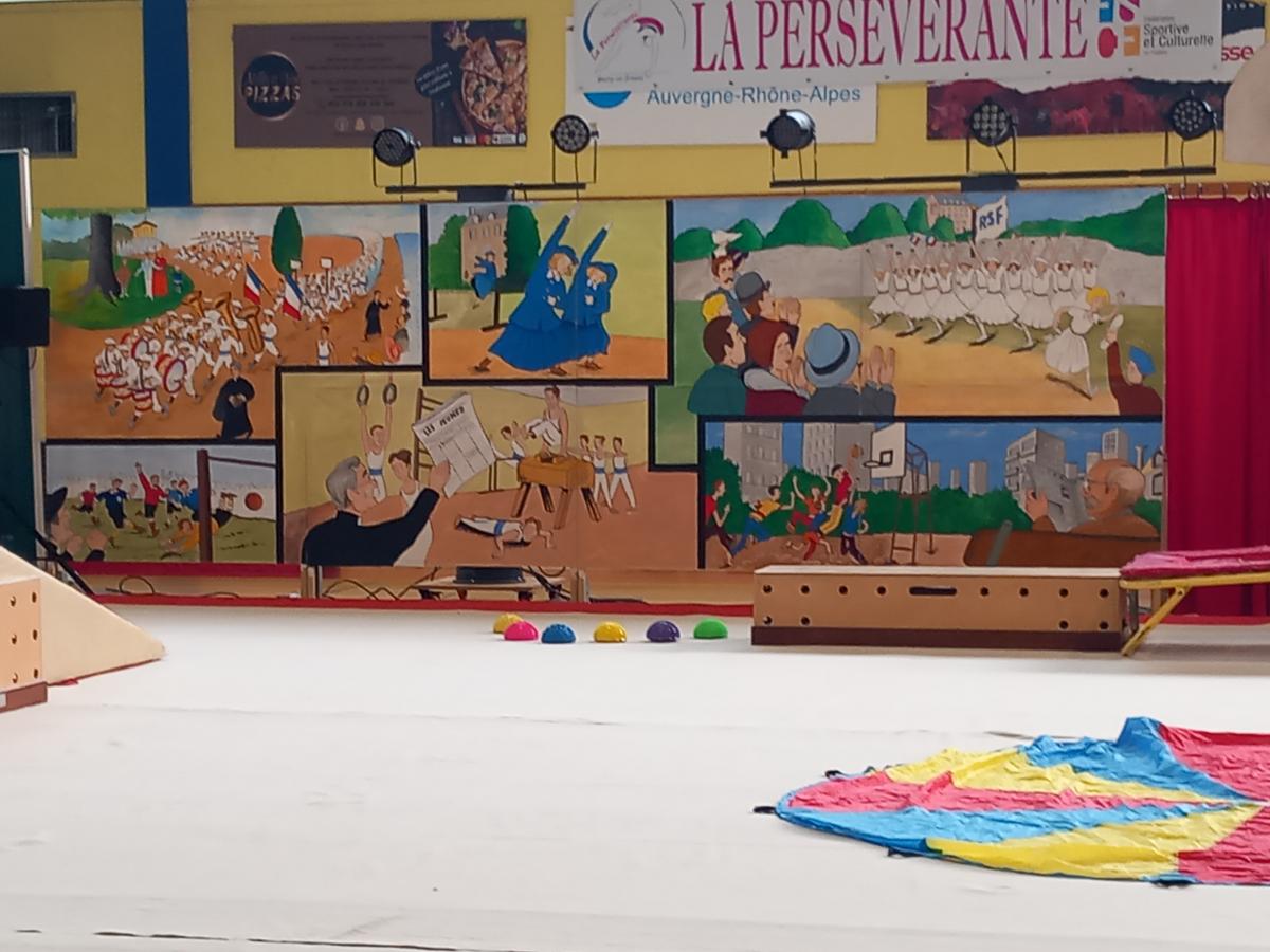 Et cette année, le thème choisi mettait à l’honneur l’histoire de notre fédération. En effet, depuis le mois d’octobre 2025, la section « arts plastiques » a œuvré pour réaliser une fresque de 12 mètres par 2 mètres servant de fond et devant laquelle se déroulent tous les numéros de ces 2 associations et leurs 170 sportifs.