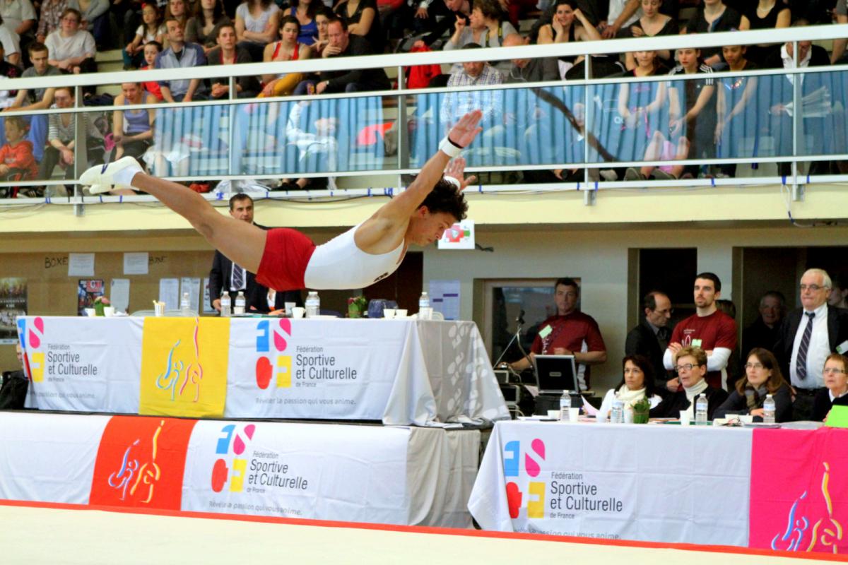 La gymnastique masculine est une discipline qui consiste à enchaîner des mouvements acrobatiques sur six agrès : le sol, le cheval d'arçon, les anneaux, la table de saut, les barres parallèles et la barre fixe. L'ensemble des mouvements et des enchaînements possibles sur chaque agrès est régi par un code de pointage international. Au sein de la FSCF, les championnats par équipe ont la particularité d'imposer deux épreuves spécifiques :