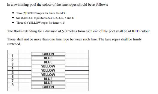 *Traduction : Dans la piscine, les couleurs des lignes d'eau devraient être de la manière suivante :