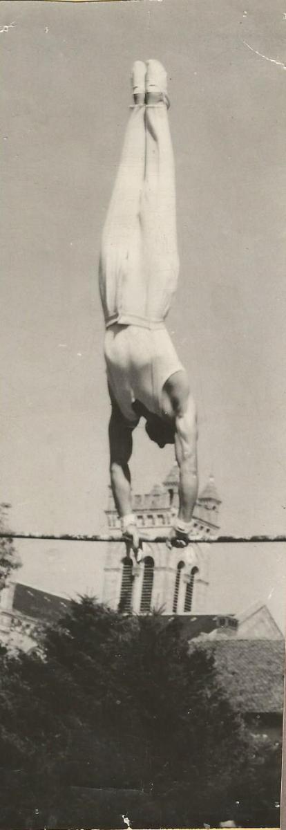 Une barre fixe, installée entre les murs de deux maisons, permettait aux garçons d’évoluer, et de tourner « lunes » et « soleils » face au clocher remarquable du village