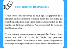 « Nous avons des personnes de tout âge. La gagnante de la télévision est une gymnaste jeunesse. Parmi les personnes qui avaient répondu, beaucoup étaient déjà proches du club ou déjà investies en tant que bénévoles. Nous avons tout de même eu des têtes nouvelles.